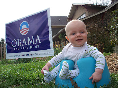 North Carolina has become a key state in the Democratic Primary so last week Hillary Clinton came to Asheville. It happened to be girls night out with some of the girls from work so I told Shelley 'why don't you go and I'll take Miles to see Hillary at the Thomas Wolfe Auditorium. A little guys night out, right? Right! We waited in the mob of people and luckily got through the TSA security still with a baby bottle full of milk. We settled in our perfect front row seats in the balcony and it was a lot of fun until things got going in the auditorium. Everybody is hootin' and hollerin' for Hillary...they are throwing t-shirts and adjectives like nobodies business and then... I think Miles became the loudest person in the room. Yup. He was screaming. So I thought he was hungry so I fed him his bottom. nope! definitely not hungry! So I sadly had to close the door on guys night out. The minute we walked out of the auditorium Miles falls fast asleep. crazy. It was pretty depressing to leave. I mean there were at least a thousand people just standing outside the auditorium because they had closed the doors to a full house. Oh well.